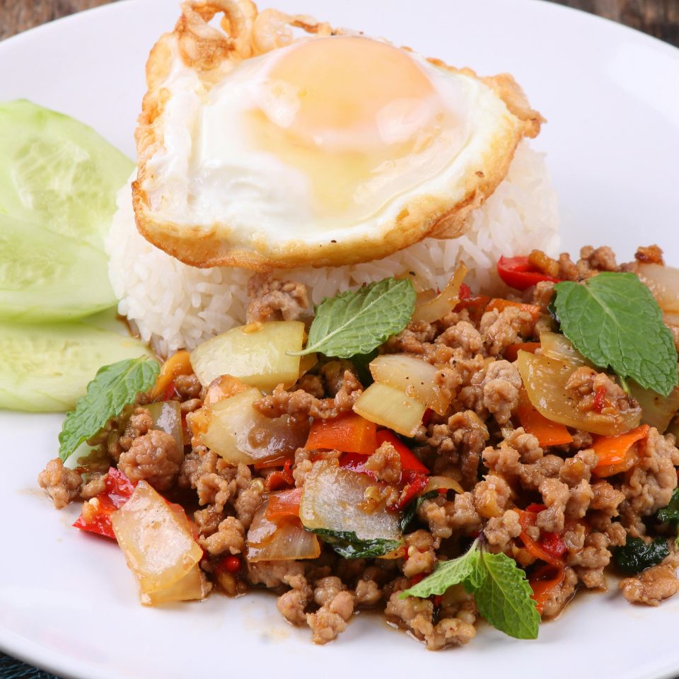 • ข้าวกะเพราหมูไขดาว