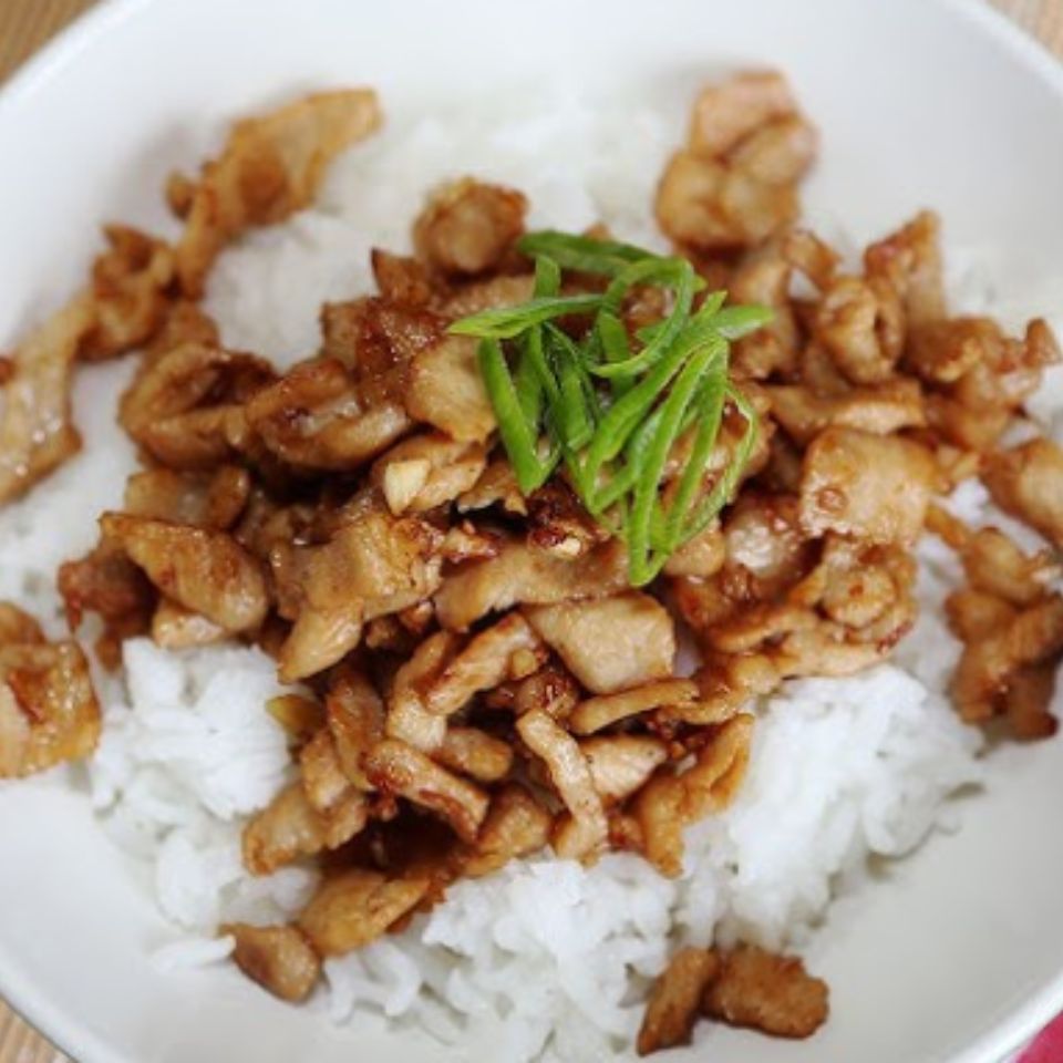 • ข้าวหมูทอดกระเทียม